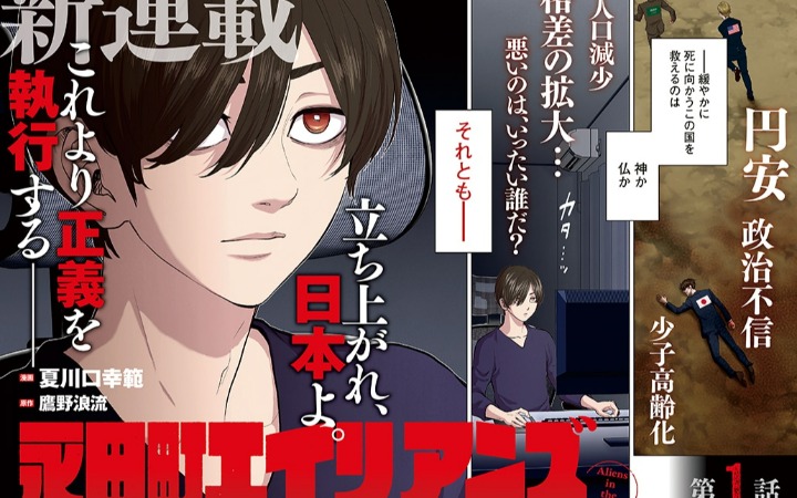 由鹰野浪流担任原作、夏川口幸范作画的新连载《永田町异客》,于4月10日发售的《Young Animal》8号(白泉社)上正式开启。