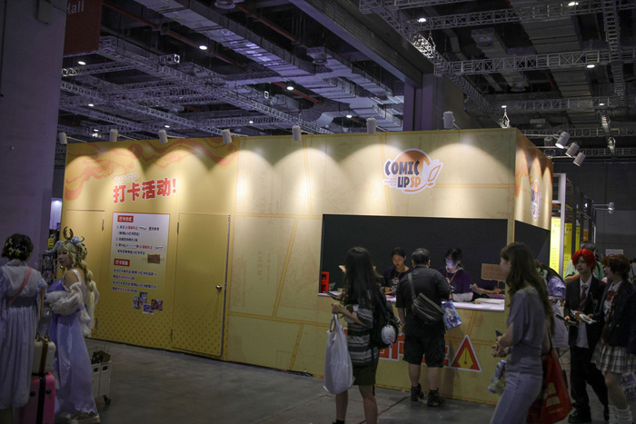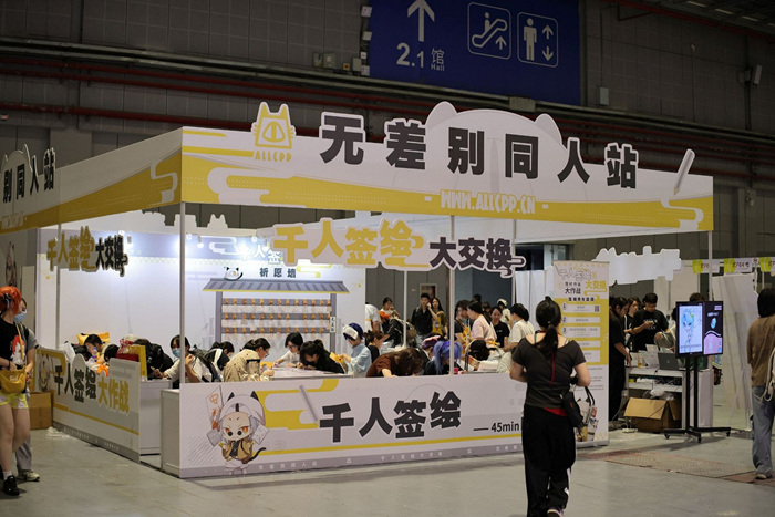 来看看CP最为特色的同人馆,5个场馆依旧是络绎不绝的人群,摊位上大家都竖起了各式各样的横幅,CP官方也准备了展位现场还可以参与打卡活动